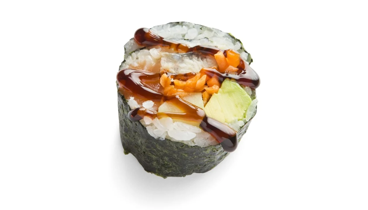 Salmon, Unagi, Avocado, Carrot, Cucumber, Teriyaki Sauce