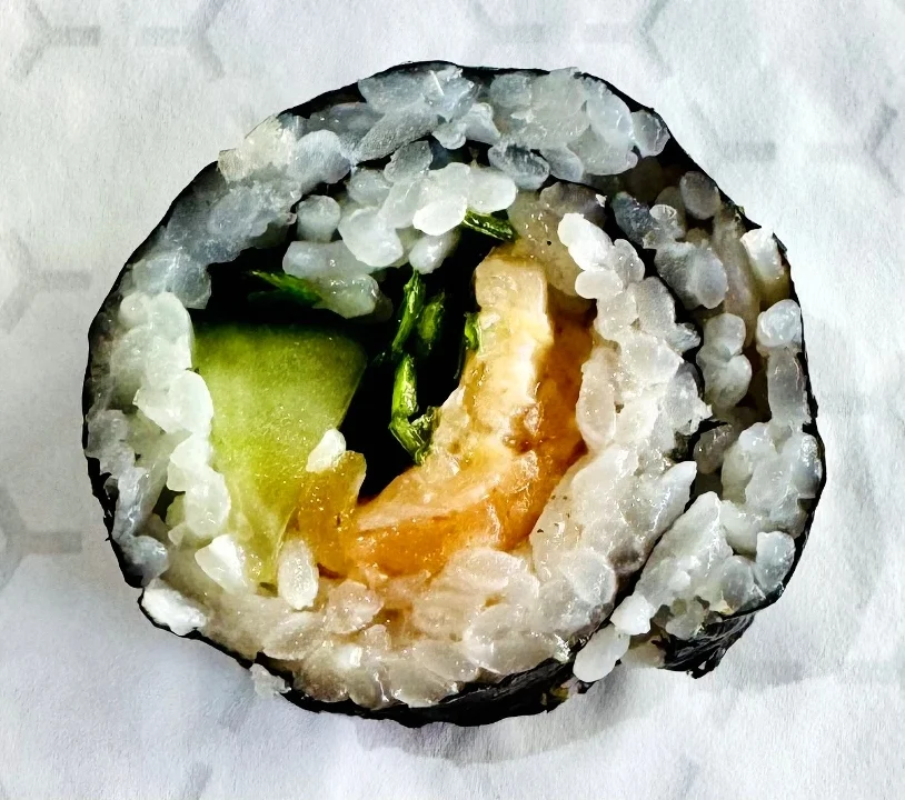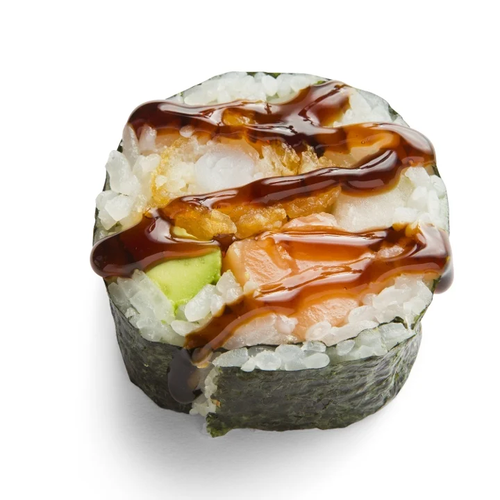Shrimp Tempura, Salmon, Avocado, Cucumber, Teriyaki Sauce