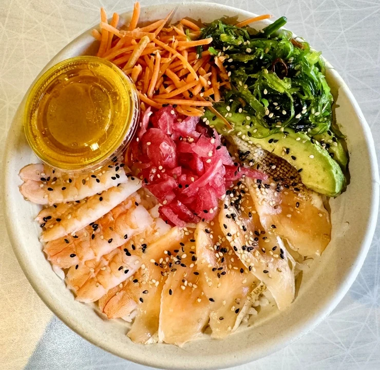 Protein, Sauces, and Garnishes of Your Choice on a bed of Sushi Rice with Two Sides of Your Choosing. Served with a Side Salad, Ginger Dressing, Pickled Ginger, and Wasabi.