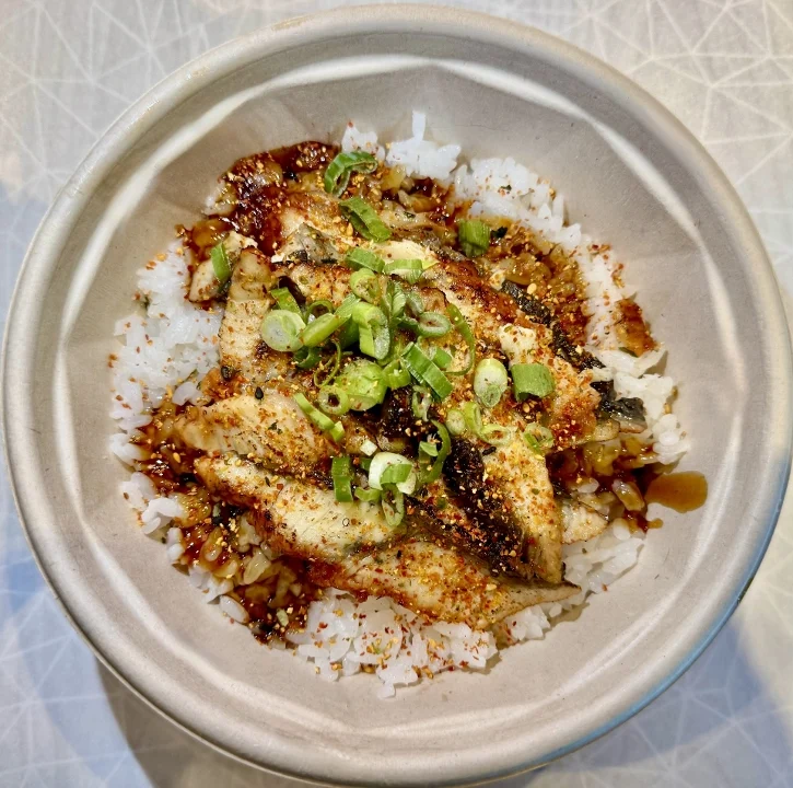 Unagi over Steamed Rice with Warm Teriyaki Sauce and the Garnishes of Your Choosing!